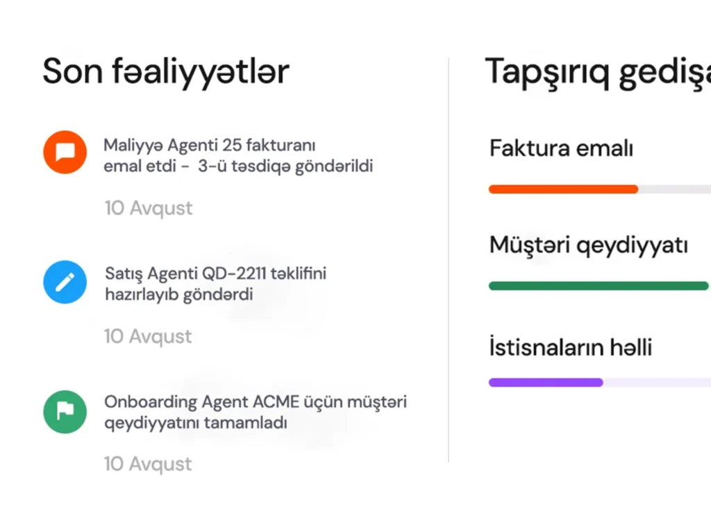 • Daha sürətli proses avtomatlaşdırması: agentlər tapşırıqları minimal insan müdaxiləsi ilə yerinə yetirir.
