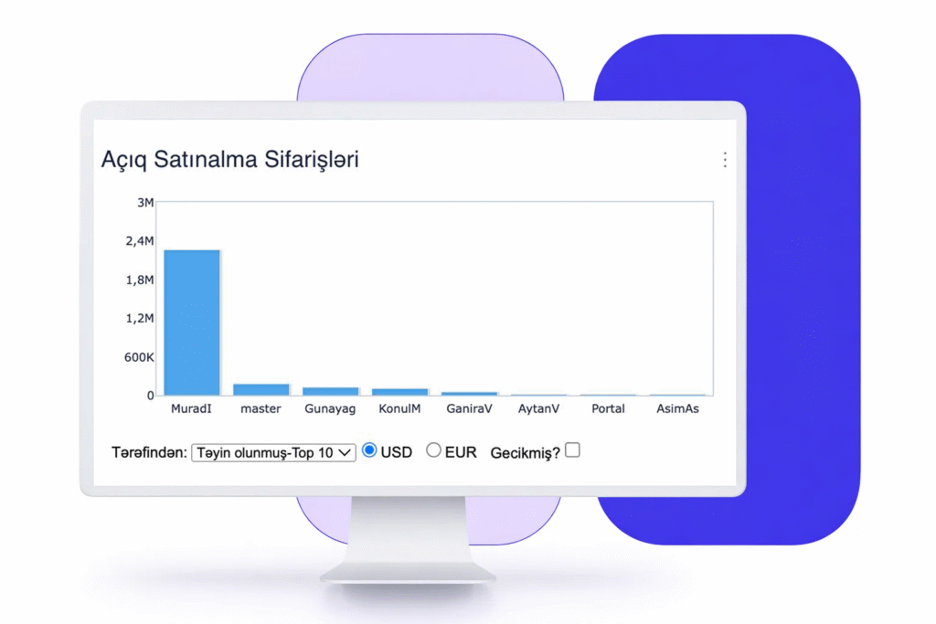 Şirkətdə məlumatla işləyən hər kəs: maliyyə, satış, logistika, istehsal və digər şöbələr real-time məlumatı görərək daha sürətli və ağıllı addımlar ata bilirlər. Beləliklə komanda işə tez uyğunlaşır.